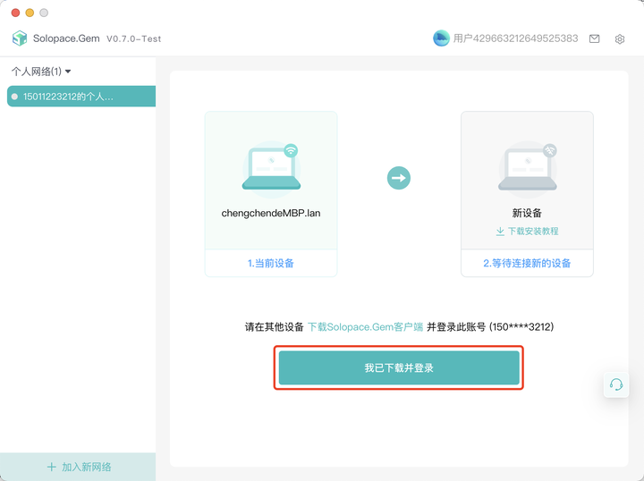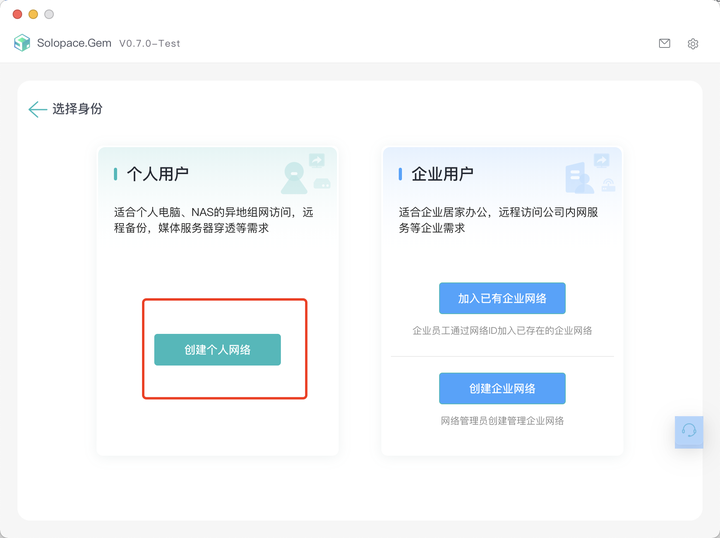 步骤1:注册并安装内网穿透工具Solopace.Gem(注册成功后选择个人身份会自动组网)