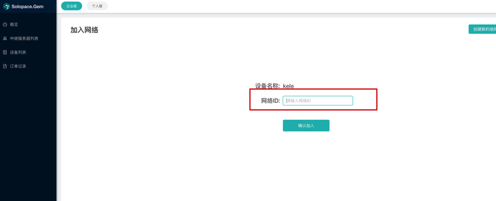 5.2 点击图标后会自动进入Solopace 网络管控台请求加入一个虚拟局域网。