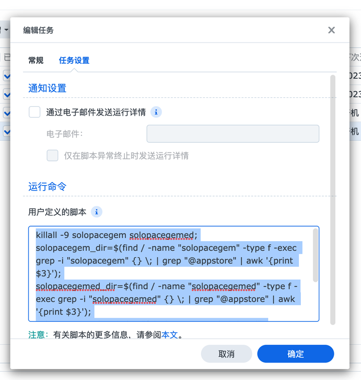 4.2编辑任务计划,任务名称SolopaceGemStart,选择root用户选择root用户选择root用户,开机触发;再点击任务设置,复制以下脚本: