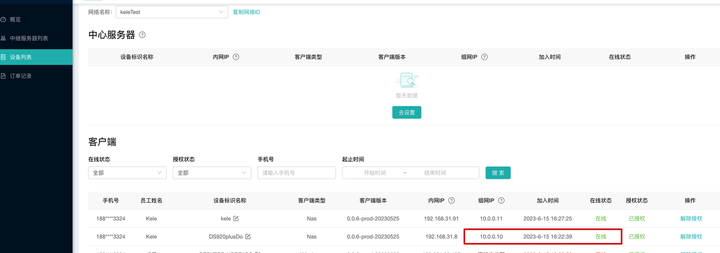 5.6 连接成功后,打开设备列表,复制NAS的组网IP组网IP组网IP + 端口号(例如10.0.1.1:5000 )到浏览器就可以正常访问NAS了。