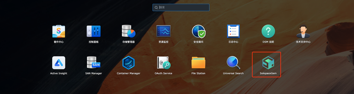 5.1点击DSM右上角的菜单选项,进入菜单列表。选择SolopaceGem应用图标