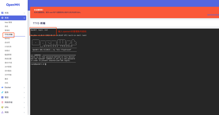 10、系统 - TTYD终端,输入OpenWrt账户密码