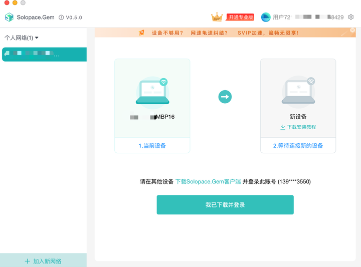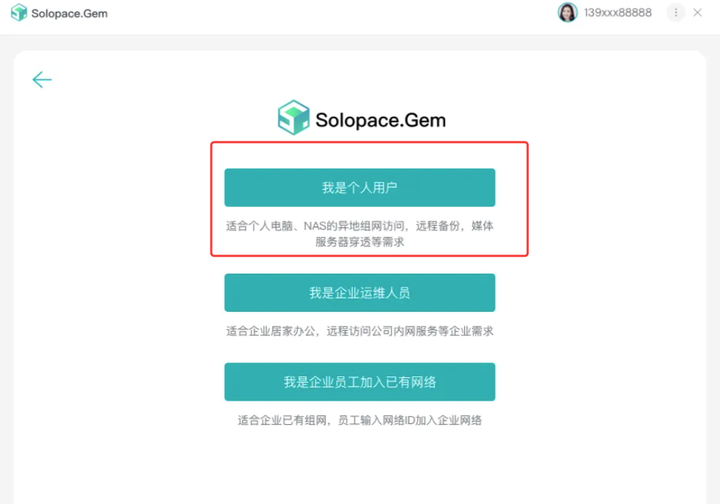 选择我是个人用户后,系统会自动创建网络,进入这一页面当前步骤结束,停留在此页即可,不要退出程序。