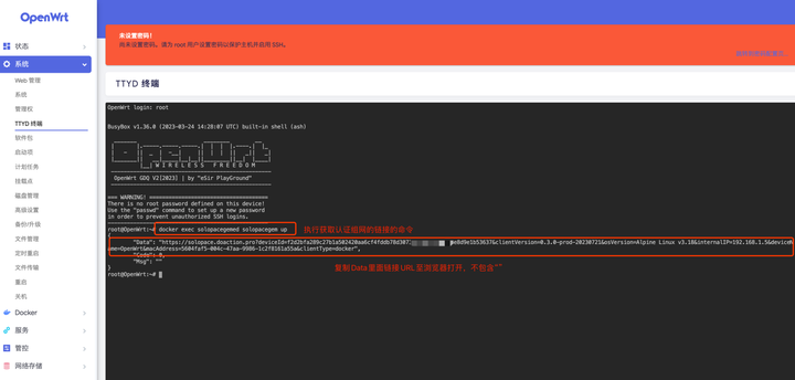 18、复制命令至OpenWrt的ttyd终端或者ssh到openwrt开启