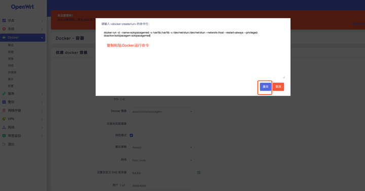 第二步:在Openwrt内安装组网工具Solopace.Gem Docker版本
