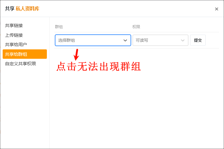 Seafile用户将资料库共享给其他群组,显示不出创建好的群组