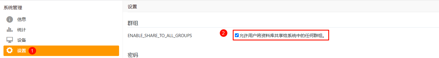 开启设置的"允许用户将资料库共享给系统中的任何群组"