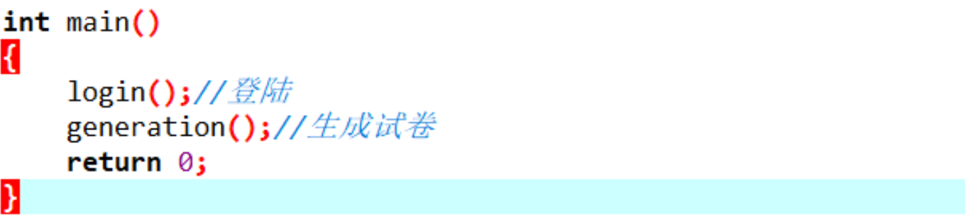 1.main函数调用登陆函数及题目生成函数。