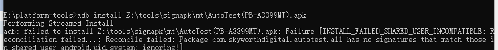 ./apksigner sign --key platform.pk8 --cert platform.x509.pem --in AutoTest\(PB-A3399MT\).apk --out Auto_mt.apk