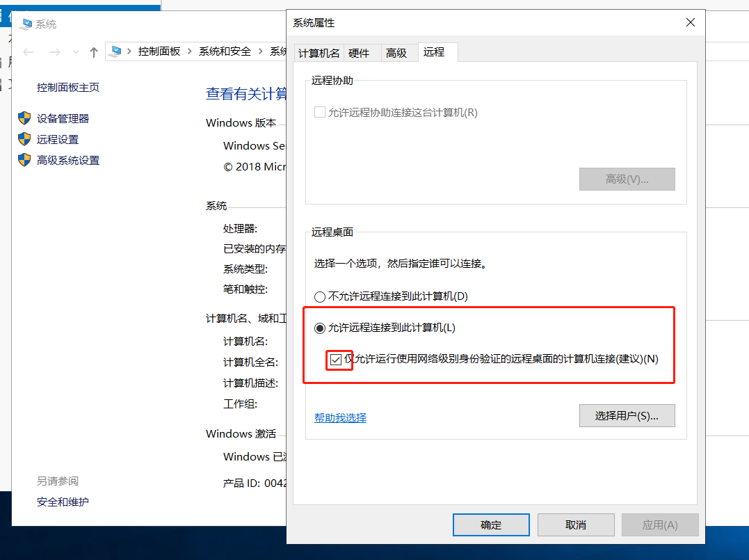 1.远程连接,关闭“仅允运行许使用网络级别身份认证的远程桌面的计算机连接”