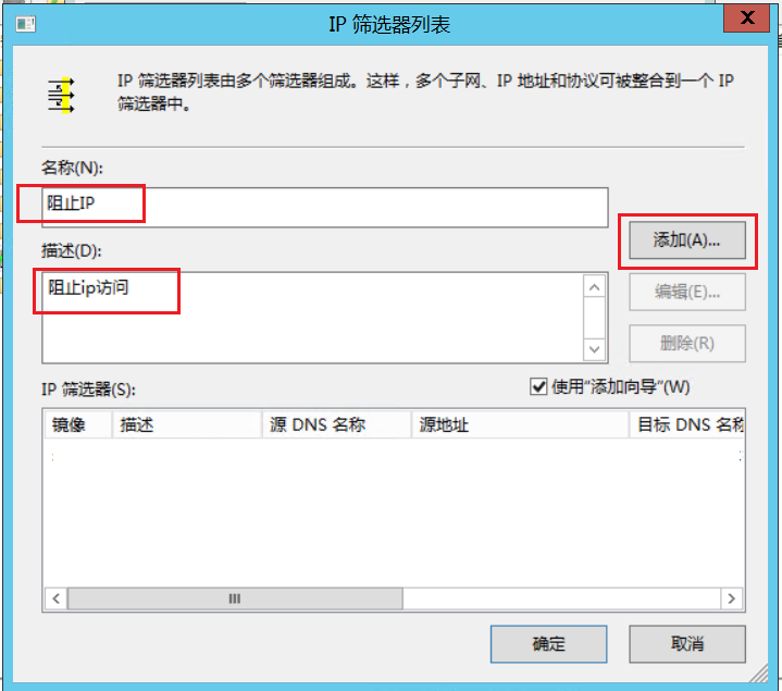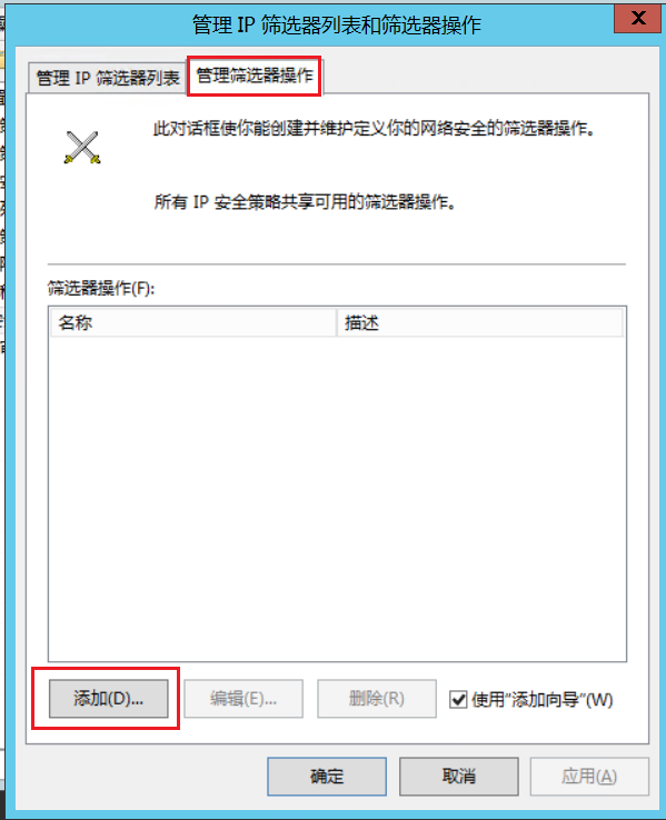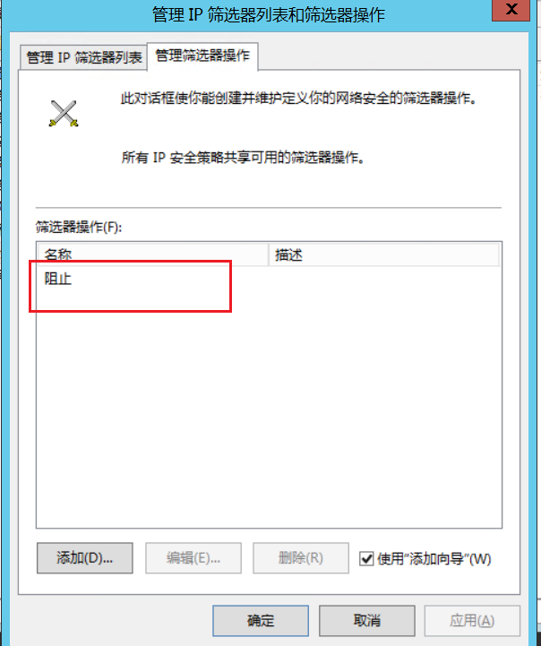 知道每个组件的作用后也可以第一步就创建IP安全策略,”IP筛选列表“和”筛选器操作“在向导中都可以设置。