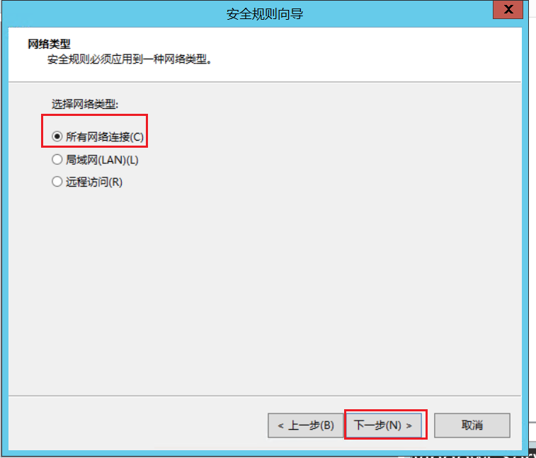 7.网络类型,默认选择“所有网络连接”,点击下一步