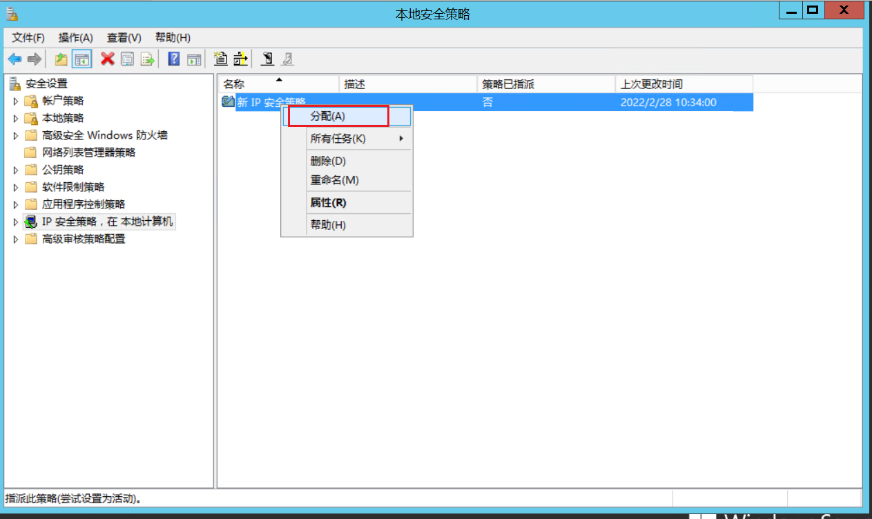 4.分配安全策略,执行分配动作是策略生效。