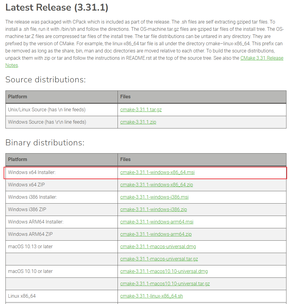 4、下载cmake的exe文件,并进行安装