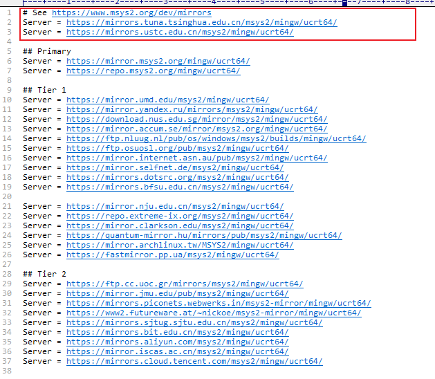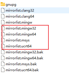 在安装目录下找到C:\msys64\etc\pacman.d\这个文件夹下的如下四个文件