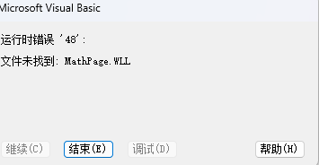在黏贴从word外部复制黏贴内容的时候遇到48号错误,这咋回事,原来是要复制64位文件夹下的mathpage.wll文件才行