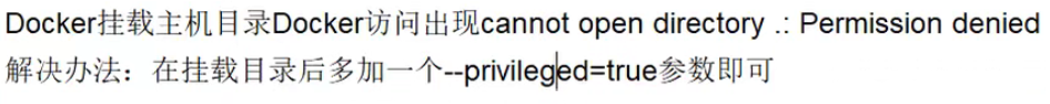 # 解决方案,添加如下:docker run -it -v /宿主机上的路径:/容器上的路径 --privileged=true 镜像名