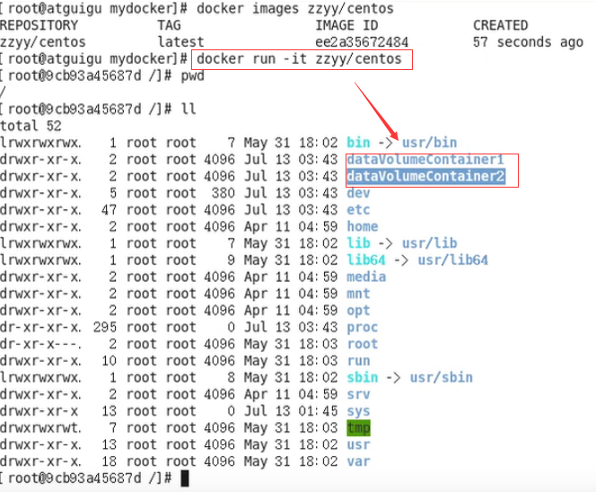 docker run -it --name docker02 --volumes-from docker01 centos # 使用centos镜像在创建一个容器,并继承docker01