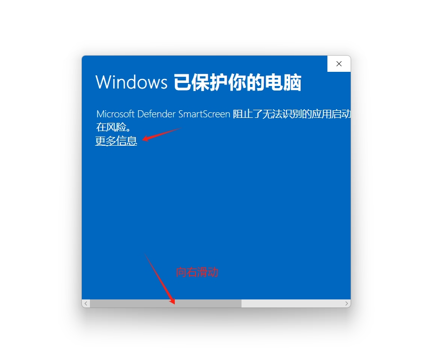 4,我们发送软件给您,因为软件经常被误报,所以先确定退出电脑上的各类杀毒软件,之后双击打开之前发送给你的“微信备份专家”软件,如果弹出蓝色提示框,选择“更多信息”,然后向右滑动滚动条,选择“仍要运行”。