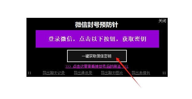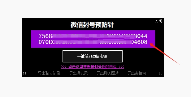 6,点击紫色区域,自动复制自己的密钥,并发送。(也会自动打开一个文档,里面也有相同密钥,从文档复制后发送也可以。)