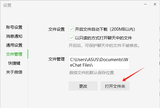 2,在电脑上打开您的微信-设置-文件管理-打开文件夹。