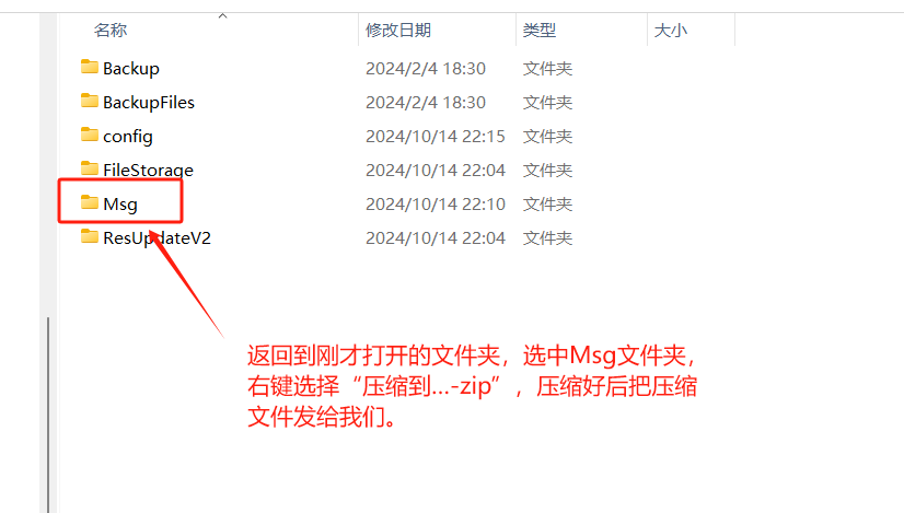 3,先退出微信,然后在刚才弹出的文件夹中选择Msg文件夹,将它压缩成一个单独的文件发送即可。(可以选中后右键——压缩到…——zip文件)