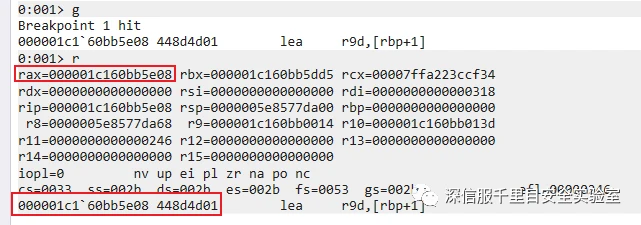 此时的地址是 migrate stub 汇编代码的地址,我们期望直接断在 reflective loader 的函数地址,我们通过