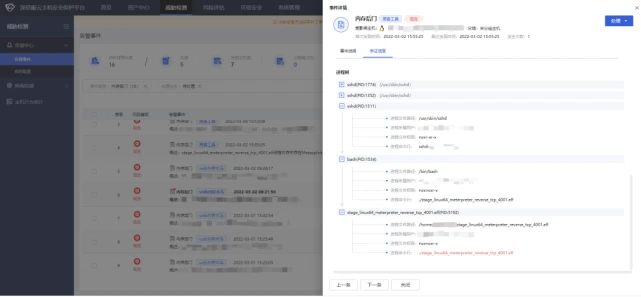 云主机安全保护平台 CWPP 能够有效检测此类利用反射式 dll 注入 payload 的无文件攻击技术。检测结果如图所示: