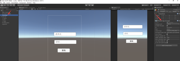 创建一个空物体名为ClientApp,创建一个脚本名为ClientApp,将脚本挂在空物体上,脚本代码如下: