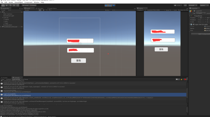 创建一个空物体LoginCtrl,将LoginCtrl.cs挂上去,将第四点里面的UI拖过去