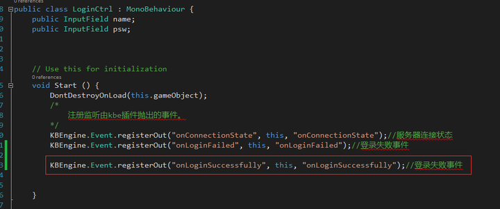 在loginCtrl.cs加入函数onLoginSuccessfully