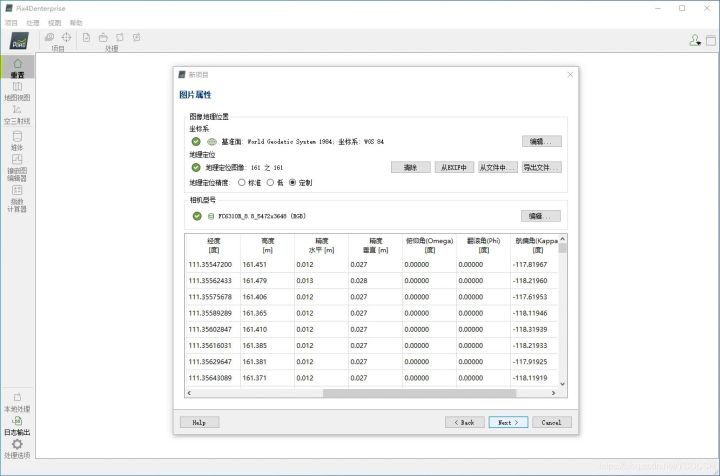 3.因为精灵RTK照片自带POS信息这里就直接默认坐标系,相机参数是写入在