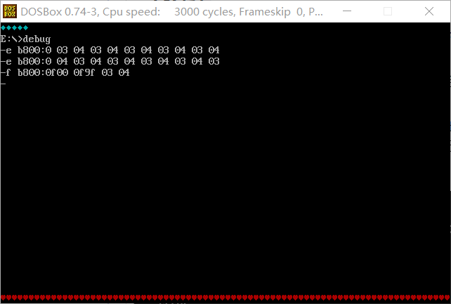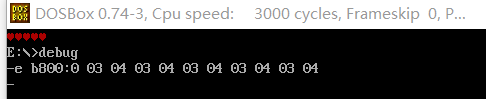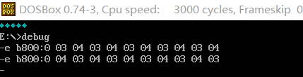 (1)在debug中,使用e命令修改内存单元b8000H~b8009H,
