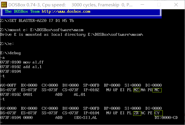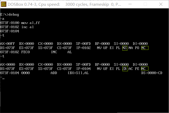 1 assume cs:code, ds:data 2 3 data segment 4 x dw 1020h, 2240h, 9522h, 5060h, 3359h, 6652h, 2530h, 7031h 5 y dw 3210h, 5510h, 6066h, 5121h, 8801h, 6210h, 7119h, 3912h 6 data ends 7 code segment 8 start: 9 mov ax, data 10 mov ds, ax 11 mov si, offset x 12 mov di, offset y 13 call add128 14 15 mov ah, 4ch 16 int 21h 17 18 add128: 19 push ax 20 push cx 21 push si 22 push di 23 24 sub ax, ax 25 26 mov cx, 8 27 s: mov ax, [si] 28 adc ax, [di] 29 mov [si], ax 30 31 inc si 32 inc si 33 inc di 34 inc di 35 loop s 36 37 pop di 38 pop si 39 pop cx 40 pop ax 41 ret 42 code ends 43 end start