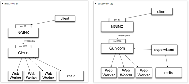 circus 是由mozilla 团队开发基于python 以及zeromq 的进程以及socket 管理的工具,类似supervisord但是比supervisord 更灵活方便。其中官方给了一个与Supervisord的对比图,可以看出两者的区别。