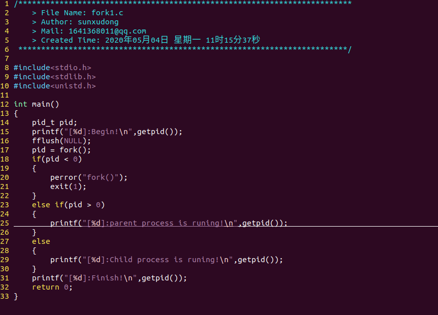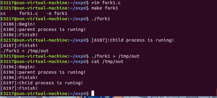 4.使用 fork 创建一个子进程,进程创建成功后父子进程分别输出不同的内容。