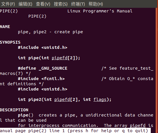 也就是说, pipefd[0] 是用于读的,而 pipefd[1] 是用于写的。