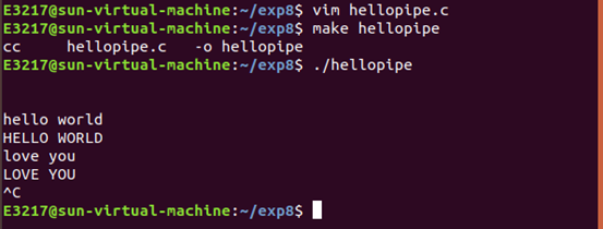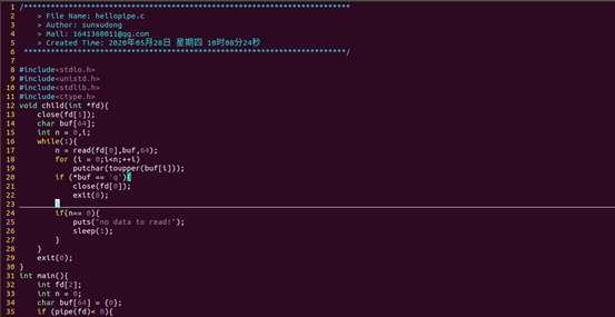 例题:父进程 fork 出一个子进程,通过无名管道向子进程发送字符,子进程收到数据后将字符串中的小写字符转换成大写并输出。