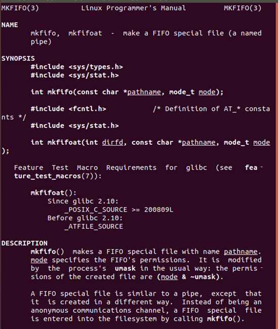 如果你使用 fstat 函数来测试该描述符,可以发现此文件类型为 FIFO 。而无名管道的无名,指的就是这个虚幻的“文件”,它没有名字。