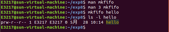 当使用 mkfifo 创建 hello 文件后,查看文件信息如下: