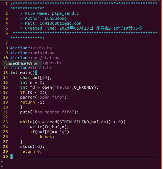 3.编写两个程序使用第2题中创建的管道进行通信。