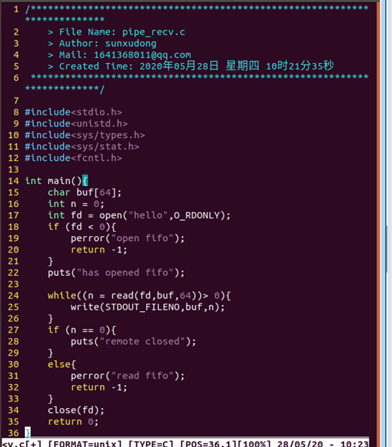 例题:编写两个程序,分别是发送端 pipe_send 和接收端面 pipe_recv 。程序 pipe_send 从标准输入接收字符,并发送到程序 pipe_recv ,同时 pipe_recv 将接收到的字符打印到屏幕。