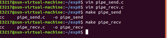 分别开启两个终端,分别运行pipe_send和pipe_recv: