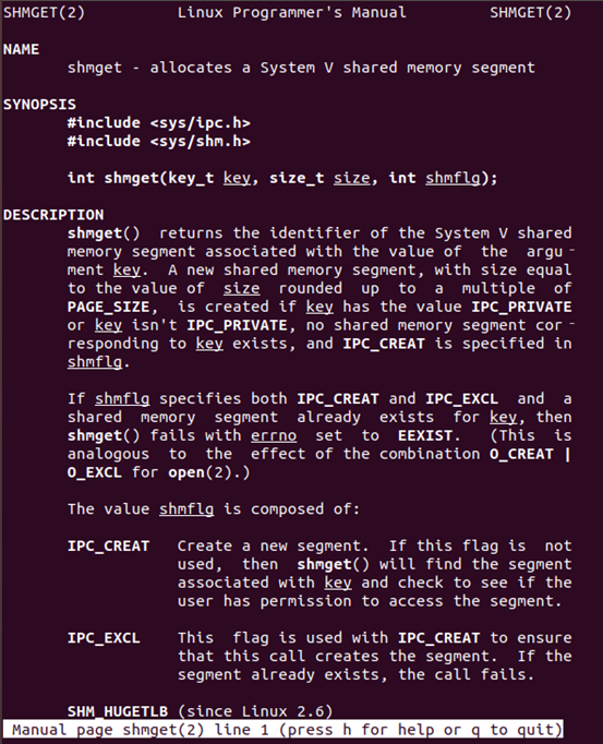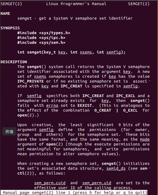 // 在 0x8888 这个键上创建内核对象,权限为 0644,如果已经存在就返回错误。 int id = shmget(0x8888, 4096, IPC_CREAT | IPC_EXCL | 0644); int id = msgget(0x8888, IPC_CREAT | IPC_EXCL | 0644); int id = semget(0x8888, 1, IPC_CREAT | IPC_EXCL | 0644); // 第二个参数表示创建几个信号量