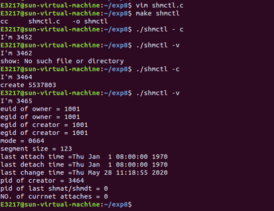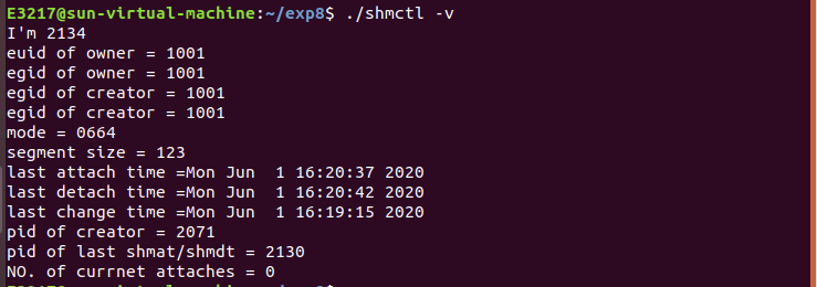 先在另一个终端执行 ./shmctl -a ,运行结束后,然后在当前终端执行 ./shmctl -v