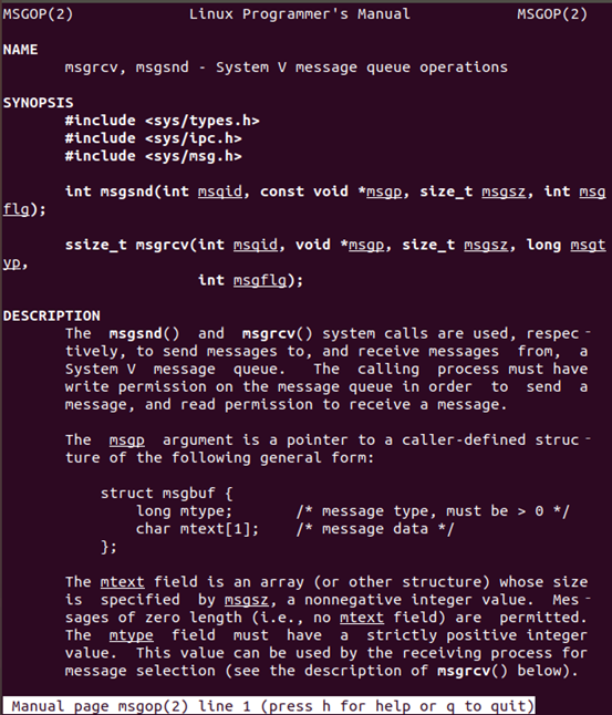 struct Msg{ long type; // 消息类型。这个是必须的,而且值必须 > 0,这个值被系统使用 // 消息正文,多少字节随你而定 // ... }