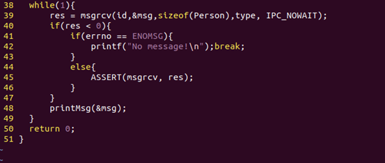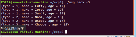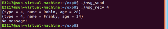 msg_recv 程序接收一个参数,表示接收哪种类型的消息。比如 ./msg_recv 4 表示接收类型为 4 的消息,并打印在屏幕。
