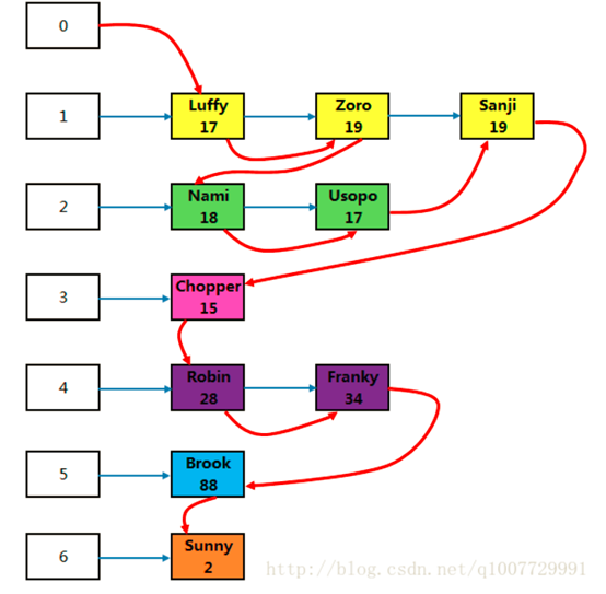 实际上,消息类型为 0 的链表记录了所有消息加入队列的顺序,其中红色箭头表示消息加入的顺序。