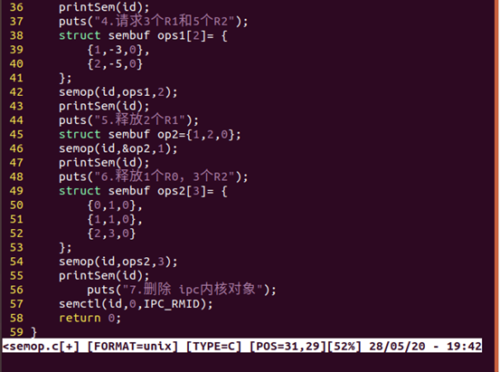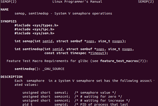 struct sembuf { unsigned short sem_num; /* semaphore number */ short sem_op; /* semaphore operation */ short sem_flg; /* operation flags */ }