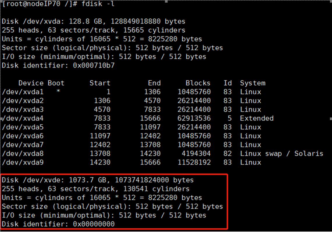 /dev/xvde 是一块新增的没有分区的硬盘